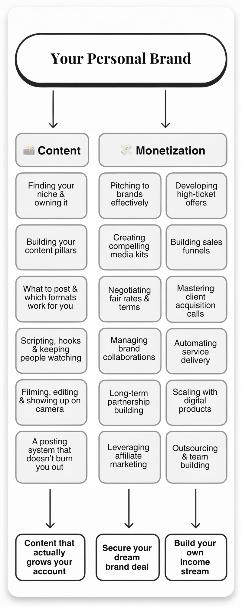 You'll learn how to build real revenue from your content, from brand partnerships to your own offers, in a way that feels natural and actually works for your audience size.